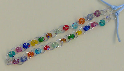 argolas de vidro de várias cores, separadas por argolas de metal